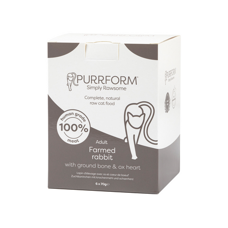 PurrForm Farmed Rabbit with Ground Bone & Ox Heart 6x70g