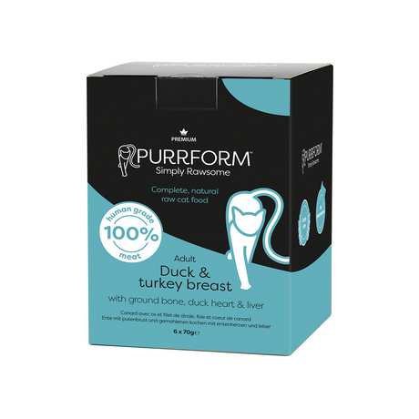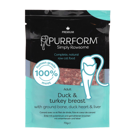 PurrForm Premium Duck with Turkey Breast & Ground Bone with Duck Heart & Liver Pouch 6x70g