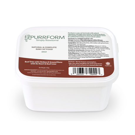 PurrForm Beef Trim with Chicken & Ground Bone with Ox Heart & Beef Liver 450g