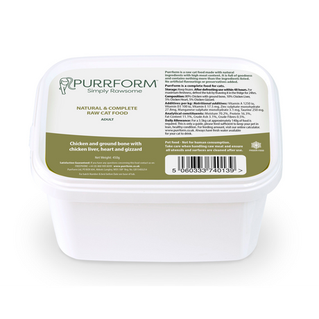 PurrForm Chicken with Ground Bone with Chicken Liver, Heart & Gizzard 450g