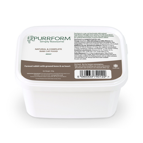 PurrForm Farmed Rabbit with Ground Bone & Ox Heart 450g