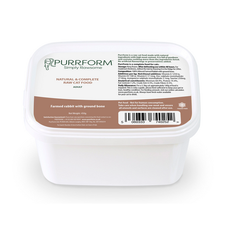 PurrForm Kitten Farmed Rabbit with Ground Bone 450g