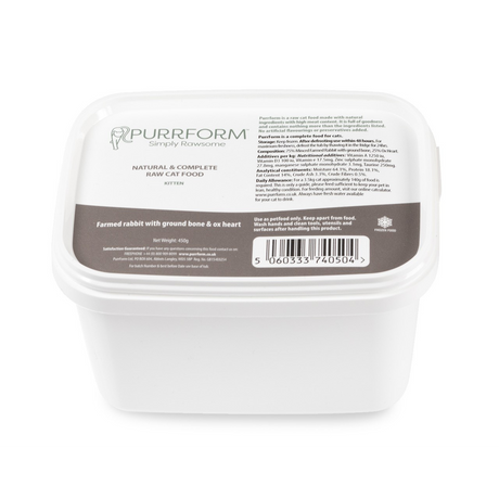 PurrForm Kitten Farmed Rabbit with Ground Bone & Ox Heart 450g