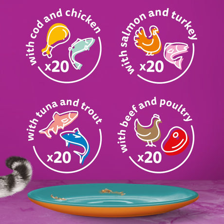 Whiskas 1+ Fish Favourites in Jelly Adult Wet Cat Food Pouches 80x85g