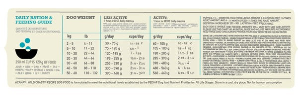 ACANA recipes are thoughtfully crafted from start to finish with delicious, quality ingredients. With a balanced 50/50 split between rich fish ingredients and nutritious fruit, grains and vegetables, ACANA Classics Wild Coast recipe provides your dog with a filling and nutritious meal crafted from simple, wholesome ingredients. It also includes nutrient-rich ingredients that support three key health benefits, including immune function, healthy digestion, and healthy skin and coat.