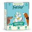 Rich in omega 3 fatty acids for super healthy skin and coat, this single source protein meal is perfect for dogs with skin allergies, sensitive digestion and dogs on weight management or low purine diets. Sustainably sourced white fish with easily digestible rice and tasty veggies, this natural and low-fat meal is designed to provide all the essential vitamins and minerals needed for a healthy balanced and nutritious diet. Suitable for all breeds of adult and senior dogs, as well as puppies over 6 months old.