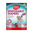 Simple Solution Disposable Diapers are suitable for dogs, ideal for females in heat, have urinary incontinence or excitable urination. Each diaper features a tail hole, repositionable closures and a comfort leg fit. The super absorbent core of these diapers are specifically designed to lock in all moisture within the diapers and is guaranteed to work every time, with the stretch waistband protection of the wrap, your dog can move around with ease while staying dry. Designed with your dogs fur in mind, each nappy stays in place using fur-friendly fasteners that keep the diaper from slipping off, these fasteners keep your dogs fur from sticking to the folds of the wrap, so attaching and removing the wrap is safe and easy.