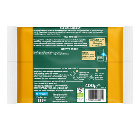 Natures Menu Dog - Frozen Just Mince Chicken & Rabbit 400g