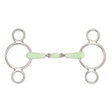 This two ring gag allows the rein to be moved, increasing the leverage if needed. The peanut ensures the mouthpiece will not come in to contact with the palate when in action making it more comfortable and the apple flavour makes this EquiKind bit easy to accept. Mouthpiece thickness: 18mm. Cheek height: 120mm (4.5", 5"), 145mm (5.5"). The EquiKind mouthpiece has the benefit of being lighter and more flexible. Particularly suitable for young, sensitive horses as they are kind on the mouth. The apple flavour makes them palatable and therefore easily accepted. Stainless steel is used due to it being durable, easy to clean and resistance to rust.