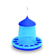 Strong and versatile poultry hoppers. Composed of four pieces for assembly. Frustoconical tank which prevetns the feed from clumping and can easily fall to the dish. The dish is of considerable height and beading is towards the inside and it also has an anti-waste ring, preventing birds from tossing and wasting feed. The cover helps to keep out any dirt from getting inside the tank, thus preserving the feed in good condition. The handle is mafe of a galvanised rod, which allows it to be suspended and hung with the cord supplied fixed to the height you see fit.