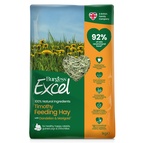 Burgess Rabbit Guinea, Pig & Chinchilla - Excel Feeding Hay with Dandelion & Marigold 1kg
