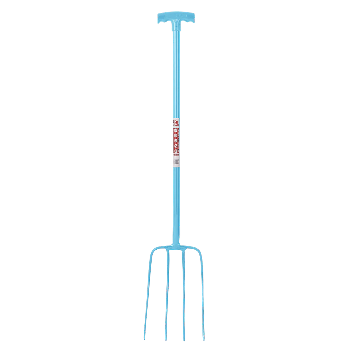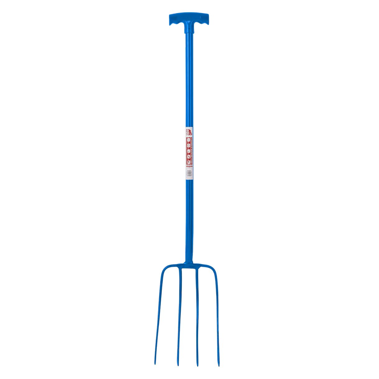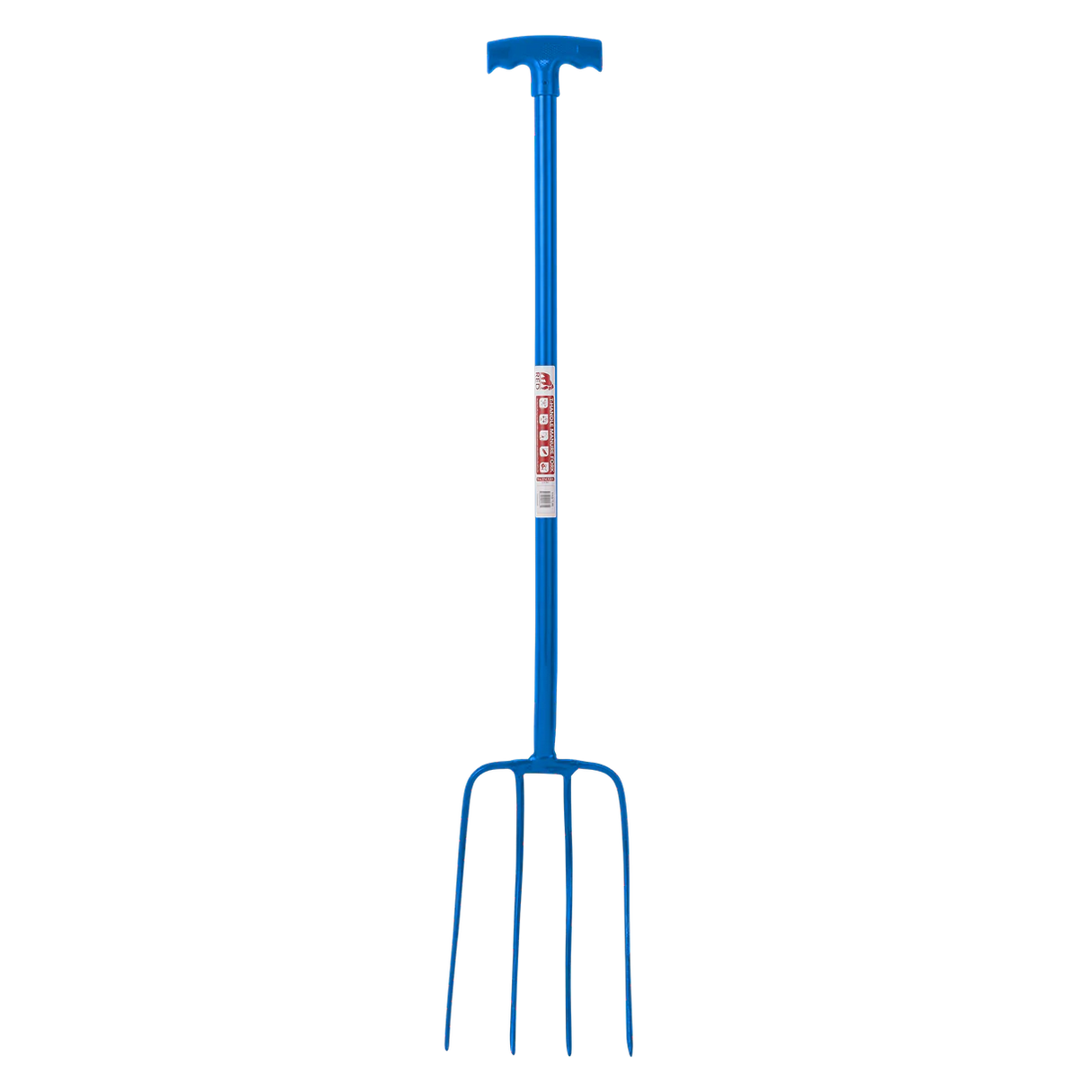 Red Gorilla 4 Prong Manure Fork with T Handle - Blue is backordered and will ship as soon as it is back in stock.