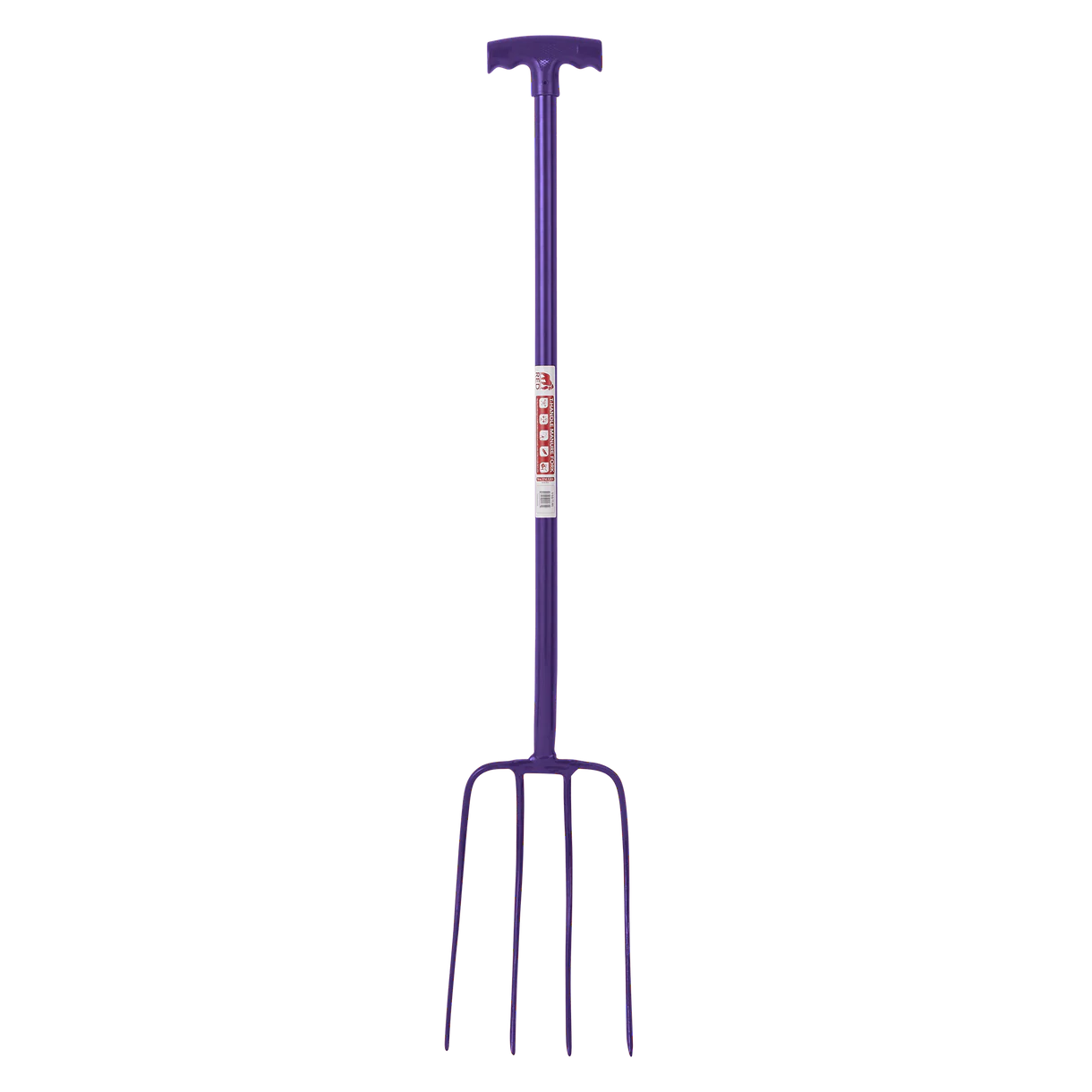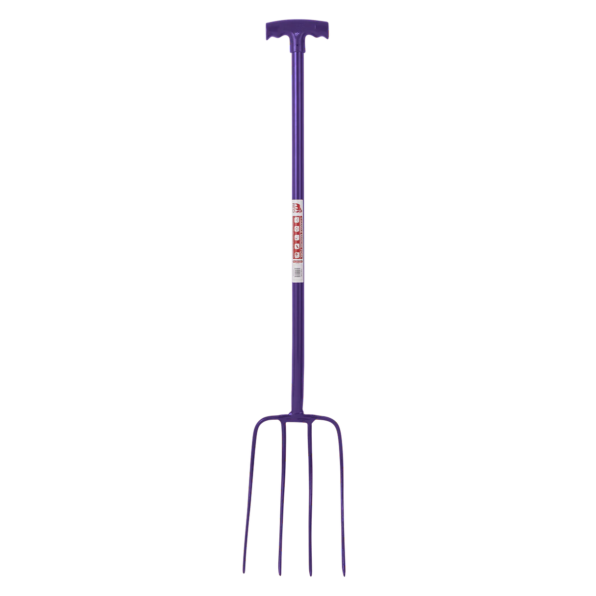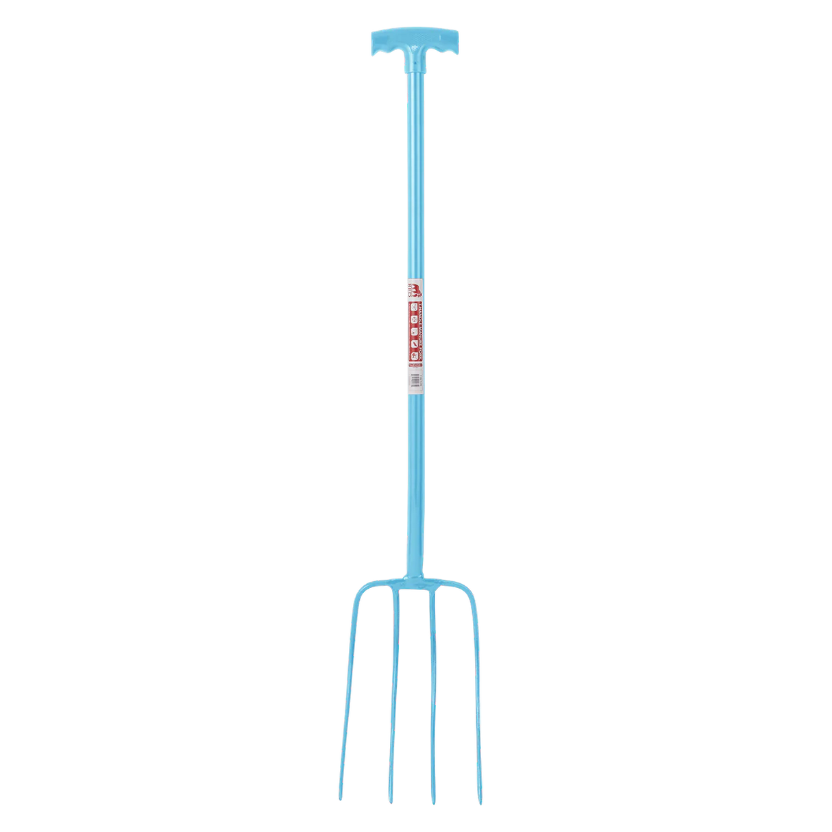 Red Gorilla 4 Prong Manure Fork with T Handle - Blue is backordered and will ship as soon as it is back in stock.