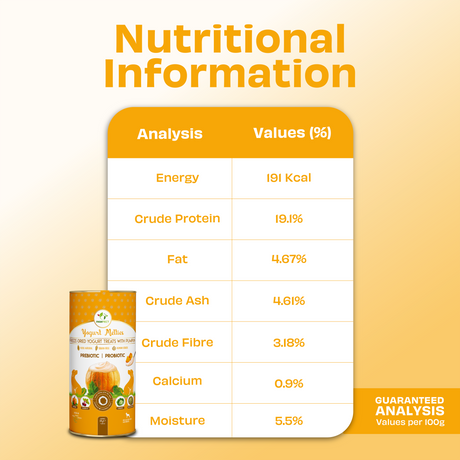 Pawfect Yogurt Melties Pre and Probiotic Dog Treats with Carrot, Flaxseed, Pea & Sweet Potato 38g