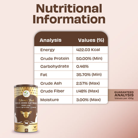 Pawfect Nature's Feast Freeze Dried Cat Treats Lamb Meat 50g