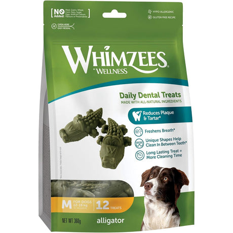 Whimzees Daily Dental Alligators for Medium Dogs 12 Pack