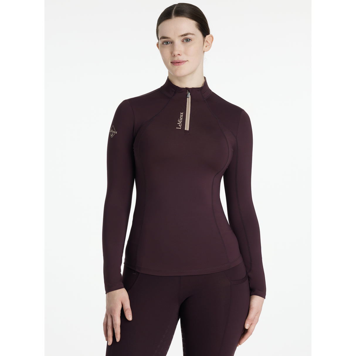 Do it all in this UV50+ quarter zip base layer. Its technical fabric regulates your body temperature, with vented underarms to keep you cool and dry. Contrast matte logo print is a subtle sign of the quality you expect from LeMieux.