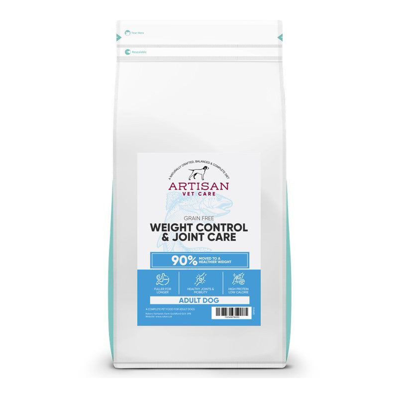 Artisan Peptide+ Weight Control & Joint Care has been scientifically developed to help manage weight while supporting strong, flexible joints. This veterinary-approved formula combines lean hydrolysed fish protein, collagen peptides, and joint-supporting nutrients with a high-protein, low-fat recipe designed to keep dogs active, mobile, and at their healthiest weight.