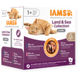 Iams Delights Land and Sea in Jelly multipack adult cat food is a complete and balanced wet cat food for cats aged +1 years. Made with expert advanced nutrition to support your cat's healthy vitality and high levels of animal protein for an incredible taste. Contains 4 tasty meat and fish varieties: 2 pouches of tuna and herring in jelly, 2 pouches of salmon and trout in jelly, 2 pouches of turkey and duck in jelly and 2 pouches of lamb and liver in jelly.