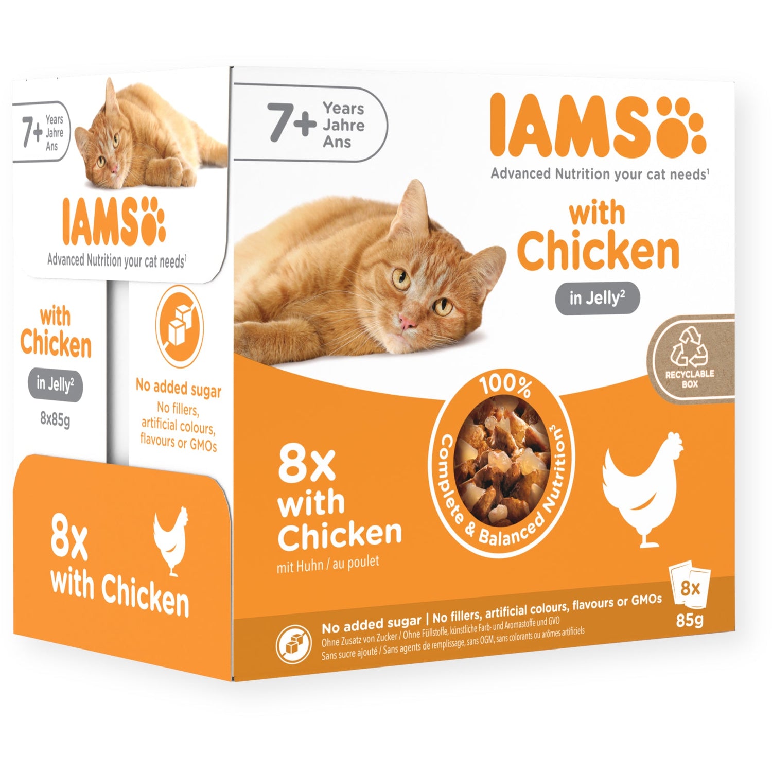 Iams Delights Wet Senior Cat 7+ Food Chicken In Jelly 8x85g
