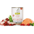 A feeding that gives your dog the variety and originality of nature. The coordinated recipe with a high quantity of goose meat, nutrient-rich sweet potatoes, vitamin C rich Rosehip and healthy wild herbs ensure a satisfied and vital dog’s life.