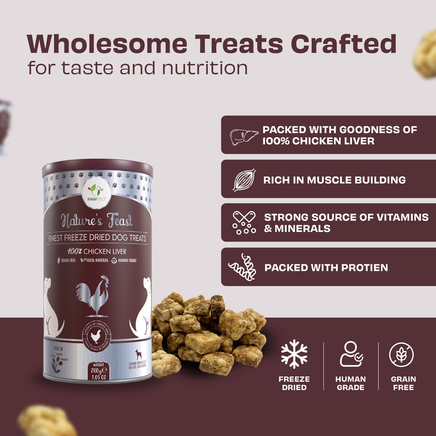 Pawfect Nature's Feast Freeze Dried Dog Treats Chicken Liver 200g