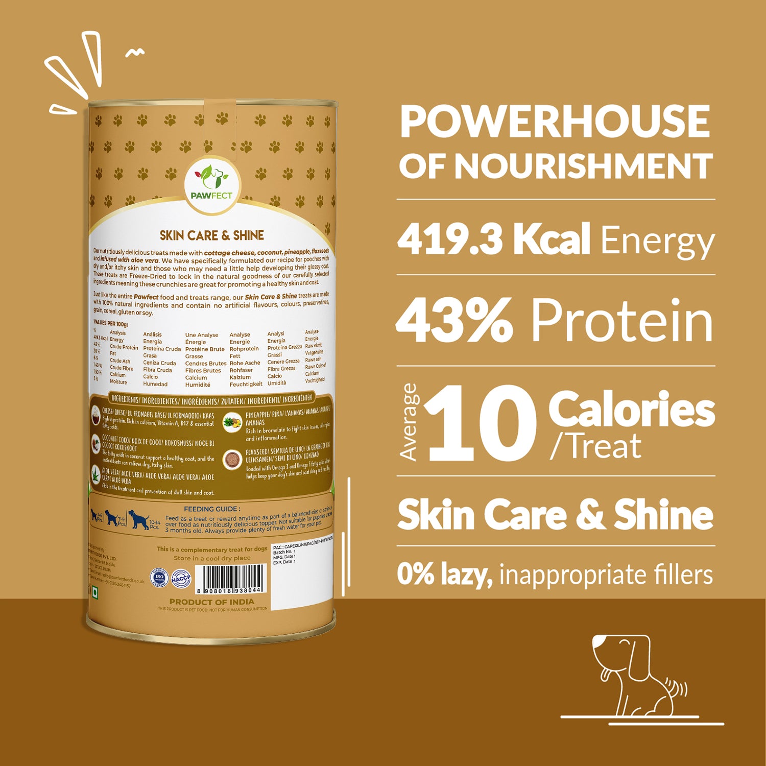 Specially crafted for dogs with dry, itchy skin or dull coats, these freeze-dried treats blend creamy cottage cheese with tropical coconut, pineapple, flaxseeds, and soothing aloe vera. Each ingredient is chosen for its skin and coat benefits, while the freeze-drying process ensures maximum nutrient retention and irresistible taste.