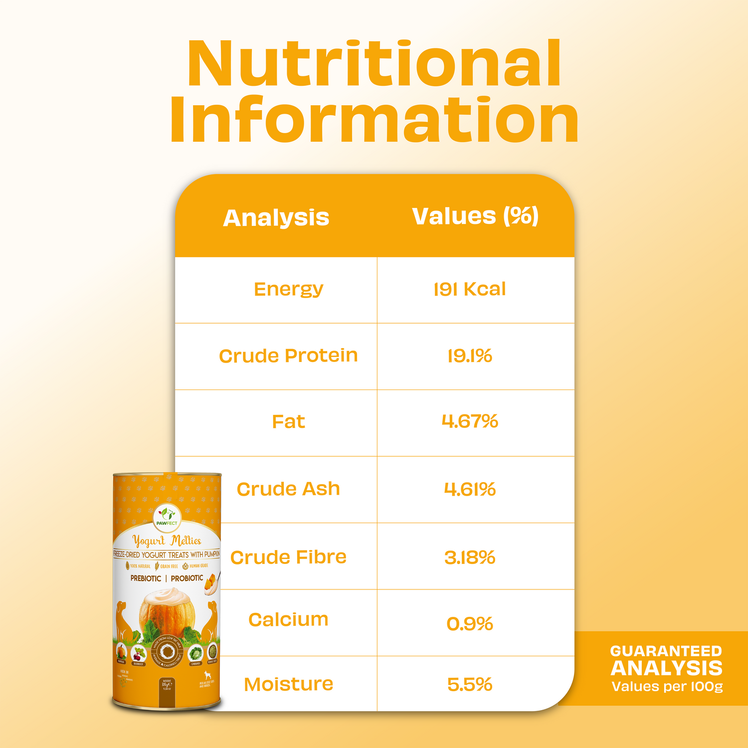 Pawfect Yogurt Melties Pre and Probiotic Dog Treats with Pumpkin, Beetroot, Cabbage & Fennel Seeds 38g